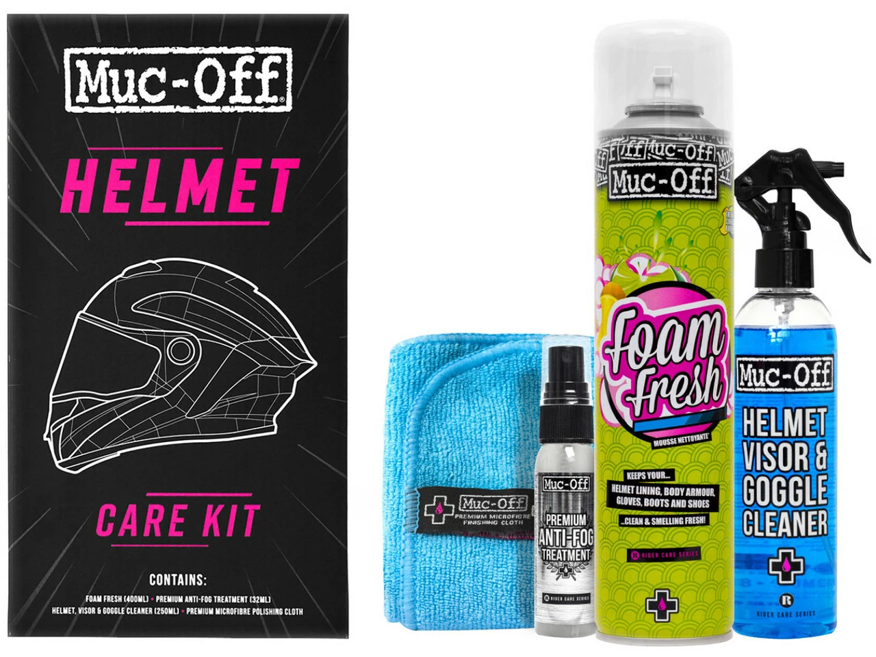 Nennmenge:35 mlVerpackungsform:SprühflascheHerstellernummer:214Lieferumfang:1 x Helmpflege Muc-Off Foam Fresh, 400 ml1 x Reinigungsspray Muc-Off Visor, Lens & Goggle Cleaner, 250 ml1 x Brillenreiniger Muc-Off Eyewear & Goggle Anti Fog Brillenreiniger, 35 ml1 x Mikrofasertuch Muc-Off